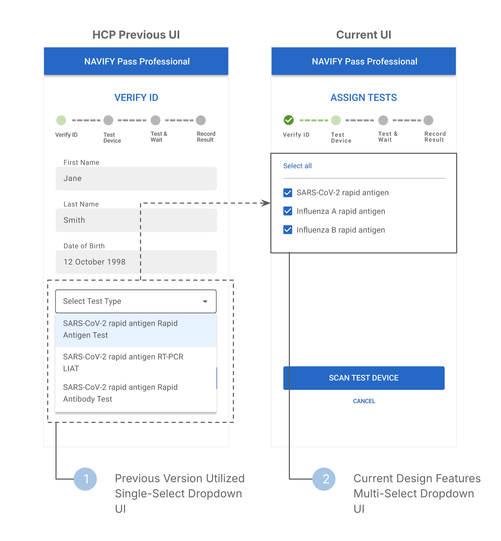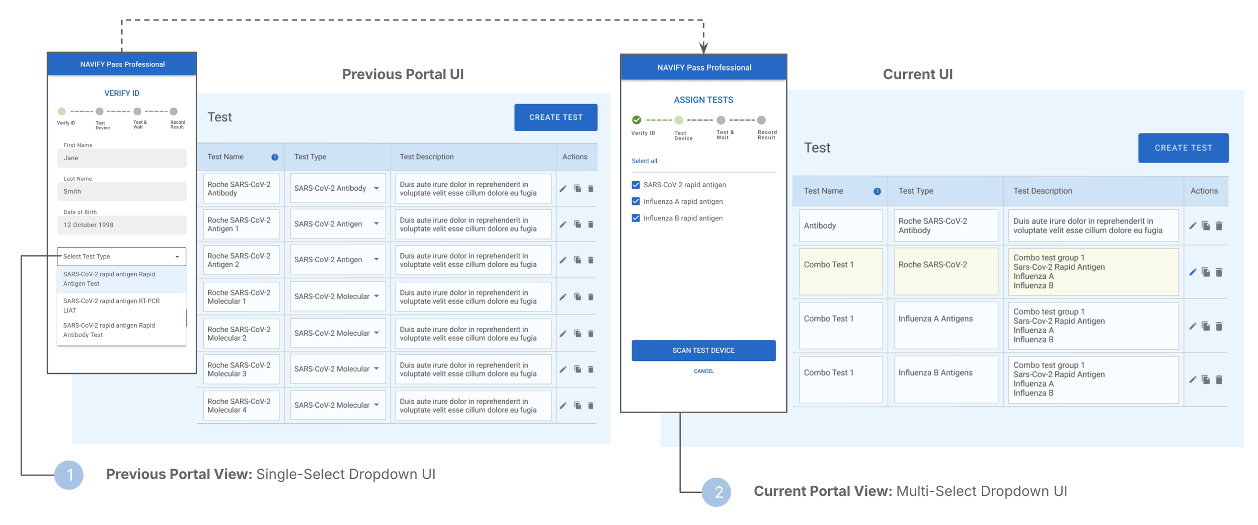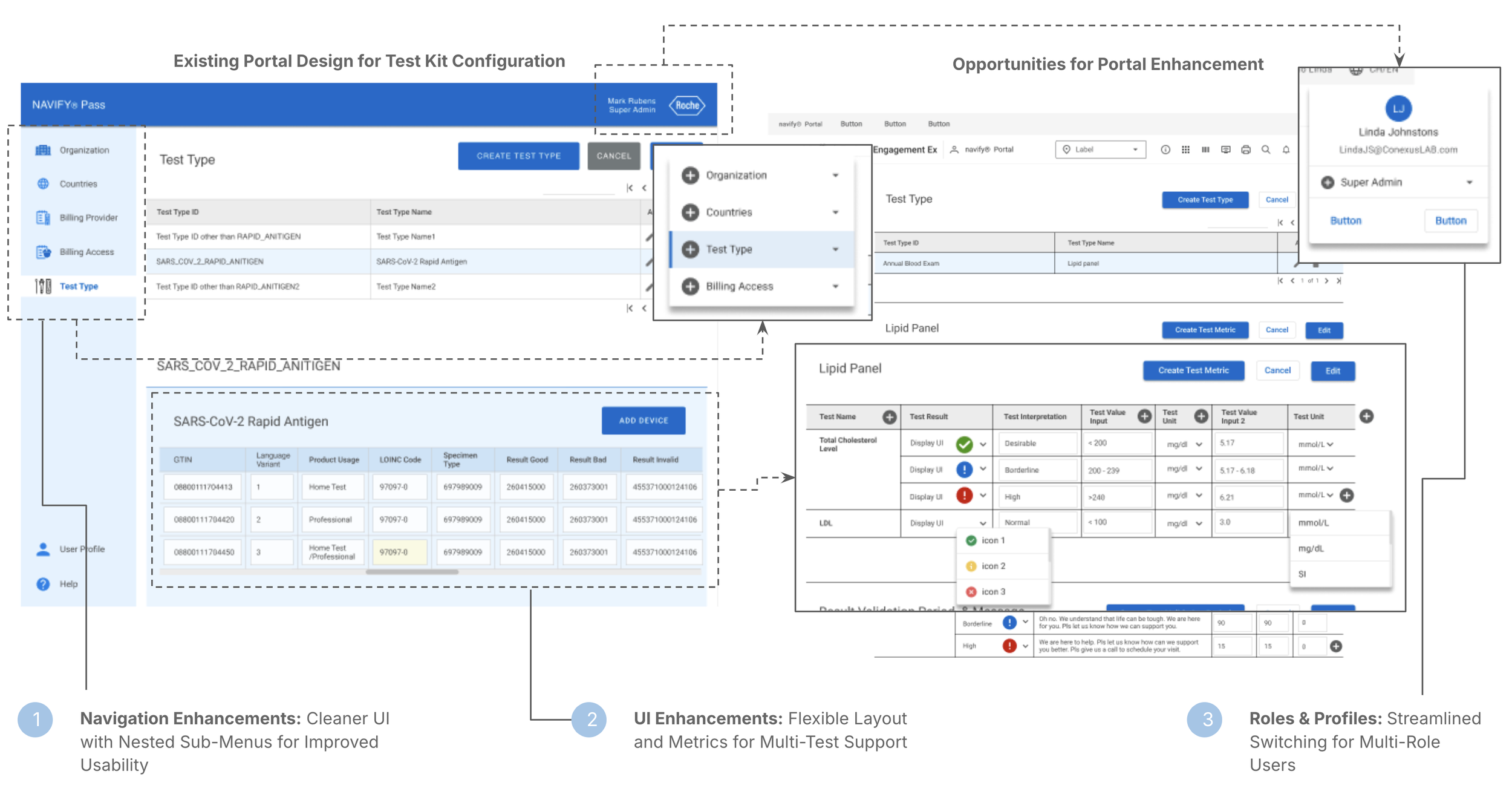 Evaluate alternative UI approaches to support both COVID-19 and metabolic test results.