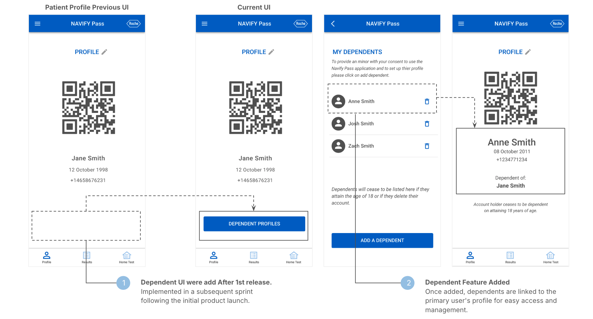 Following the initial release, users expressed the need to manage family accounts and share results via mobile. While these features were identified early, resource and time constraints led to their inclusion in a later sprint.