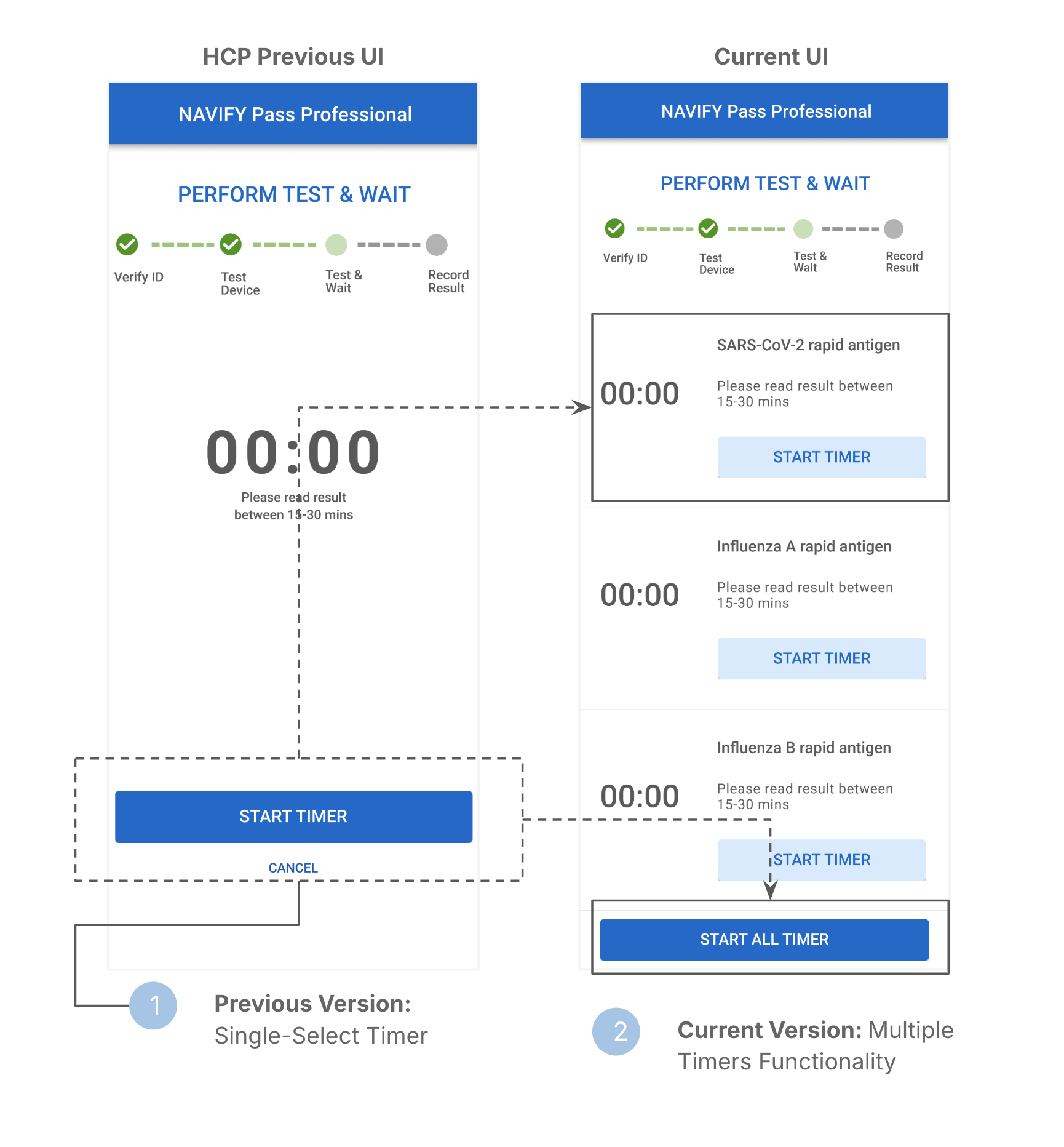 With the introduction of multiple test types, the updated UI replaces the previous single-timer approach.